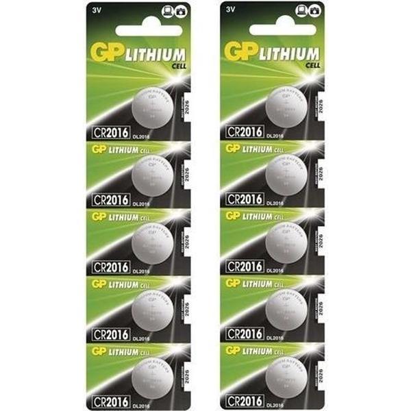 10 Stuks (2 blisters a 5st) - GP CR2016 3V lithium knoopcel batterij