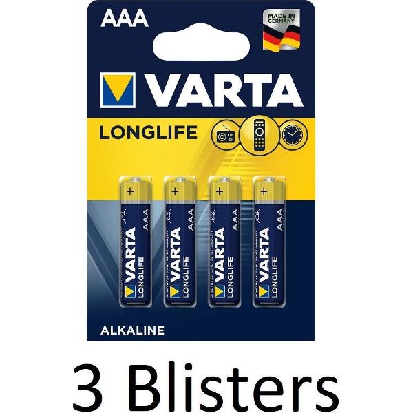12 Stuks (3 Blisters a 4 st) Varta Longlife AAA Alkaline Batterij