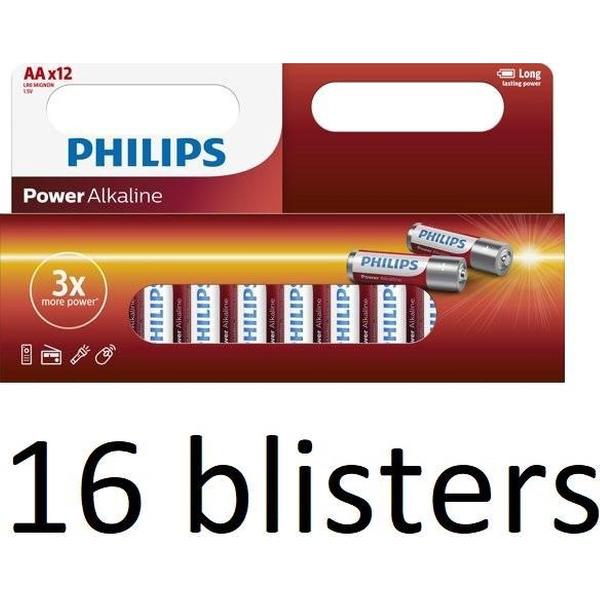 192 Stuks (16 Blisters a 12 St) Philips AA Alkaline Batterijen