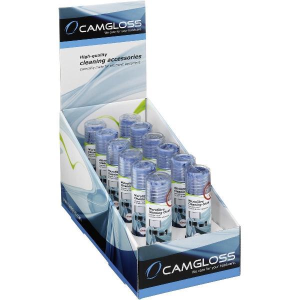12 x CAMGLOSS microvezel doekjes (18 x 20 cm) in verkoopbevordende toonbankdisplay.