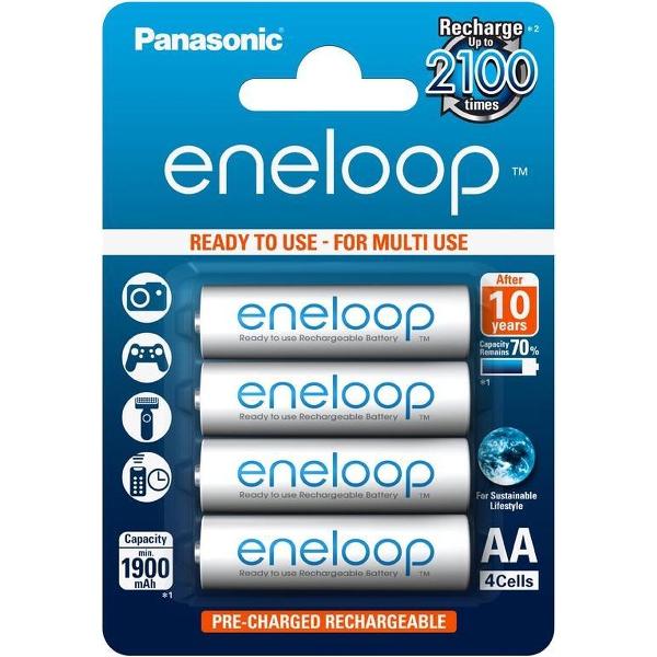 Sanyo BK-3MCCE/4BE. Type accu/batterij: Rechargeable battery, Energie-opslagtechnologie accu/batterij: Nikkel-Metaalhydride (NiMH), Accu/Batterij voltage: 1,2 V. Type verpakking: Blister. Vorm: Cylinder, Cylindrische batterij-grootte: AADe 1x4 Panasonic Eneloop Mignon AA 1900 mAh van Panasonic is het ideale product om je fotografie naar een hoger niveau te tillen. Via FotografieVergelijk.nl kan je eenvoudig 1x4 Panasonic Eneloop Mignon AA 1900 mAh bestellen bij de goedkoopste leverancier. Met een product van het merk Panasonic verzeker je jezelf van goede kwaliteit.