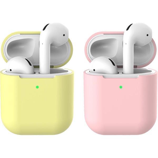 2 beschermhoesjes voor Apple Airpods - Geel & Roze - Siliconen case geschikt voor Apple Airpods 1 & 2