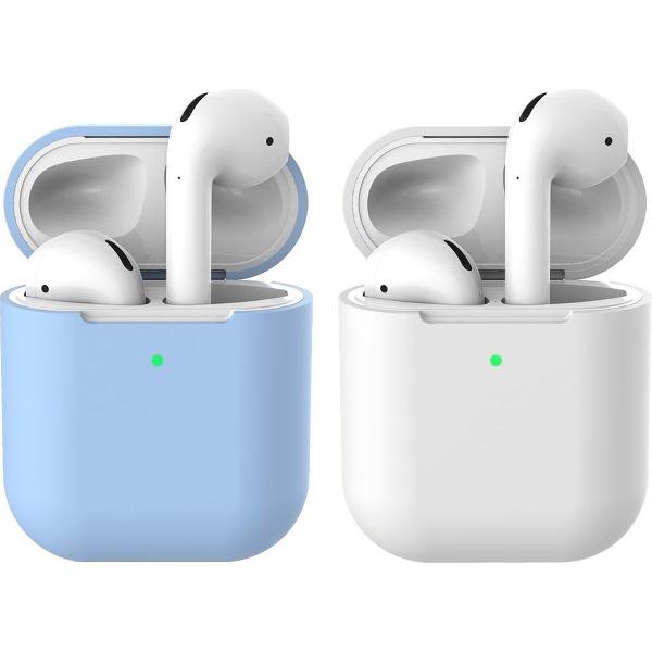 2 beschermhoesjes voor Apple Airpods - Licht Blauw & Wit - Siliconen case geschikt voor Apple Airpods 1 & 2