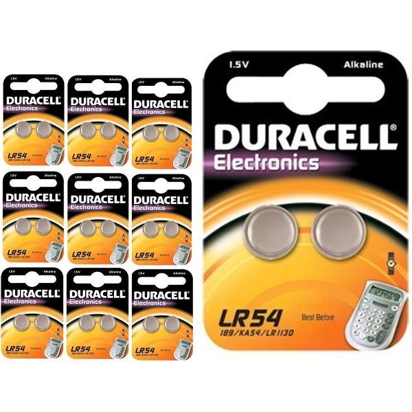 20 Stuks (10 Blisters a 2st) - Duracell G10 / LR54 / 189 / AG10 Alkaline knoopcel batterij