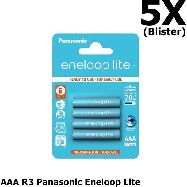 20 Stuks (5 Blisters a 4st) - AAA R3 Panasonic Eneloop Lite 1.2V 550mAh Oplaadbare Batterijen - Speciaal voor dect telefoons, Tot 3000 laadcycli - Blisterverpakking