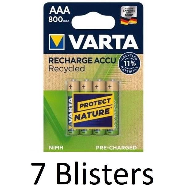 28 Stuks (7 Blisters a 4 st) Varta Recharge Accu Recycled AAA Oplaadbare Batterijen 800 mAh