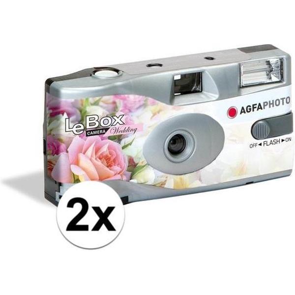 2x Bruiloft/huwelijk wegwerp camera met flitser en 27 kleuren fotos - Vrijgezellenfeest weggooi fototoestel