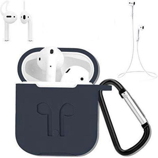 3 in 1 set! Hoesje voor Airpods siliconen case cover beschermhoes + strap + earhoox - navy blauw