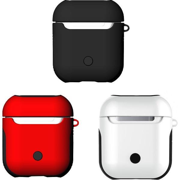 3-Pack Case Hoes Voor Apple Airpods - Beschermhoes Cover - Wit / Rood / Zwart
