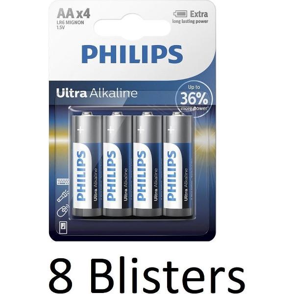 32 Stuks (8 Blisters a 4 st) Philips AA Ultra Alkaline Batterijen