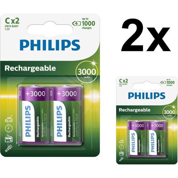 4 Stuks (2 blisters a 2st) - Philips MultiLife 1.2V C/HR14 3000mah NiMh oplaadbare batterij