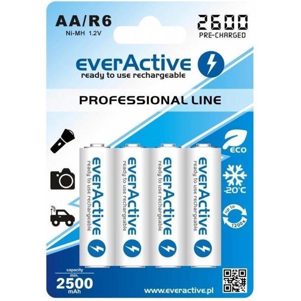 4 Stuks - R6 AA 2600mAh everActive Professional oplaadbaar