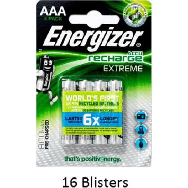 64 stuks (16 blisters a 4 stuks) Energizer Extreme AAA Oplaadbaar 800 mAh