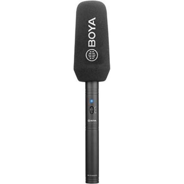 De BY-PVM3000S van Boya is een professionele high-end richtmicrofoon met een supercardioïde richtkarakteristiek. De ingebouwde preampmodule zorgt ervoor dat het geluid versterkt wordt. Van de BY-PVM3000 zijn twee versies leverbaar: S en M. U bekijkt momenteel de S-versie, met een lengte van 28 cm. De S-versie neemt geluid op in een hoek van 70 graden. Vergeleken met de M-versie neemt de BY-PVM3000S geluid op in een grotere hoek. Dit resulteert in een hoog volume en relatief meer omgevingsgeluid. De BY-PVM3000S is geschikt voor de kortere afstanden. Met de knop op de BY-PVM3000S schakelt u de microfoon in en kunt u desgewenst een low-cut-filter inschakelen. Hiermee blokkeert u ongewenste bromtonen, bijvoorbeeld van de airconditioning of het verkeer. Toepassing BY-PVM3000S De BY-PVM3000S is ideaal wanneer u geluid van dichtbij zuiver wilt vastleggen en waarbij achtergrondgeluid weggefilterd moet worden. De ingebouwde xlr-male-aansluiting maakt het mogelijk om een xlr-kabel aan te sluiten en de microfoon te verbinden met uw camera. We hebben ook een speciale kabel voor koppeling met uw iPhone (zie optionele accessoires). De meegeleverde plopkap en het windfilter zorgen ervoor dat u binnen en buiten geen last heeft van (wind)ruis. De BY-PVM3000S wordt gemonteerd in een houder met elastieken. Dit zorgt ervoor dat bewegingen of tikjes aan de camera geen invloed hebben op het geluid. Indien uw camera geen fantoomvoeding levert, kunt u de BY-PVM3000S ook van stroom voorzien door een aa-batterij te plaatsen.De 6971008024487 van Boya is het ideale product om je fotografie naar een hoger niveau te tillen. Via FotografieVergelijk.nl kan je eenvoudig 6971008024487 bestellen bij de goedkoopste leverancier. Met een product van het merk Boya verzeker je jezelf van goede kwaliteit.