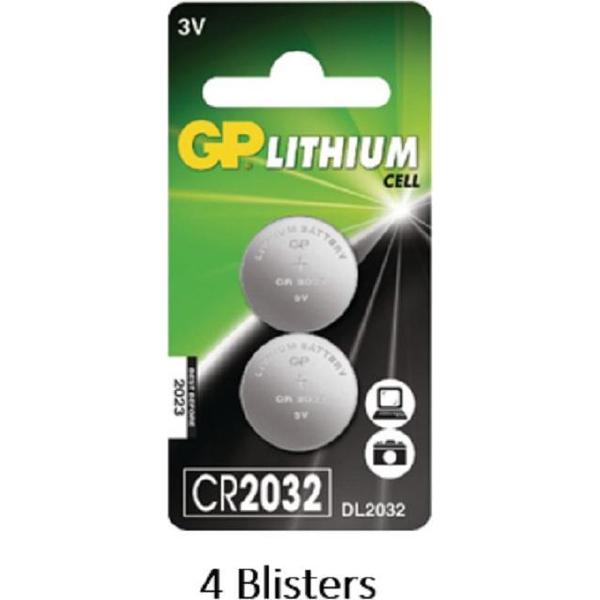 8 stuks (4 blisters a 2 stuks) GP Lithium Cell CR2032 batterij 3V