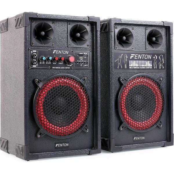 Actieve speakerset - Fenton SPB-8 - 400W actieve speakers - 8 inch met o.a. Bluetooth - Actieve speaker + passieve speaker - Ook perfect als karaoke set!