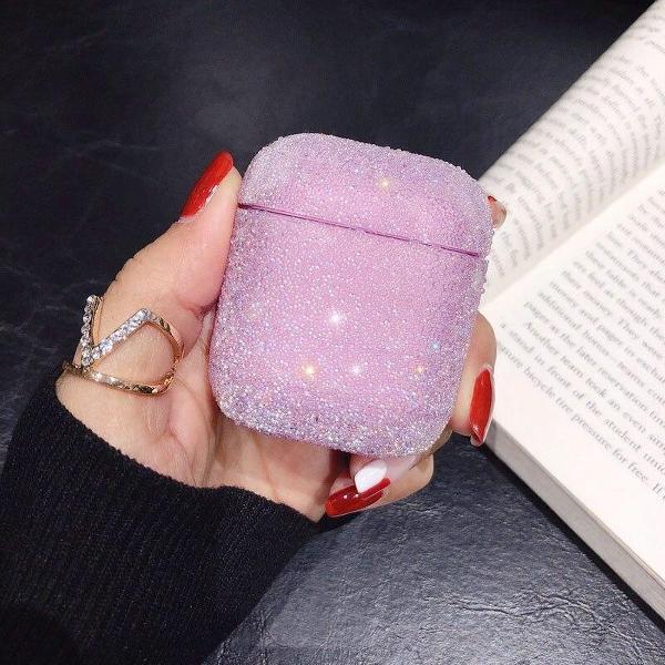 Glitter hoesje voor Apple AirPods - paars met glitter diamantjes.