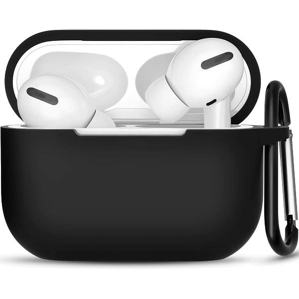 Apple Airpods Pro ultra dunne siliconen cover - Hoesje - extra dunne Apple Airpods siliconen cover met sleutelhanger - Zwart / Black