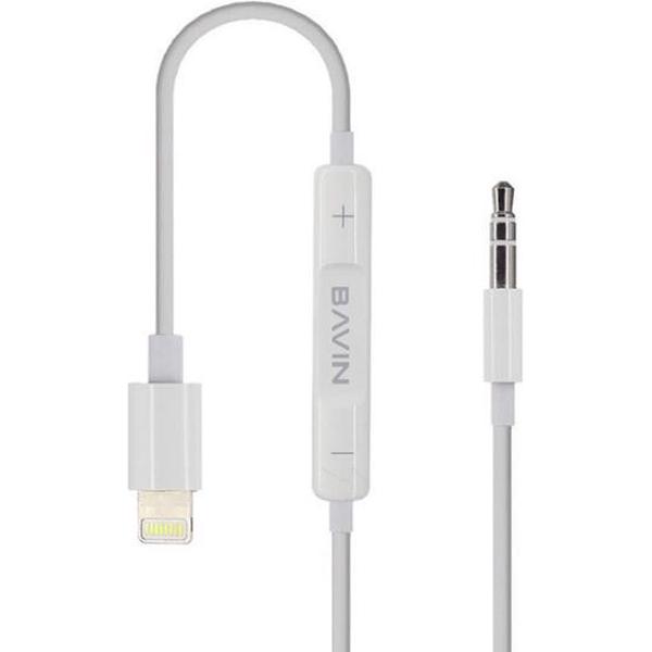 Bavin Lightning naar Audio Aux kabel met Volumeregelaar - Lightning naar Jack 3.5MM - Wit