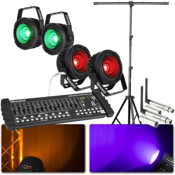 BeamZ lichtset met DMX controller, draadloze DMX en 4 krachtige BeamZ COB50 spots + standaard
