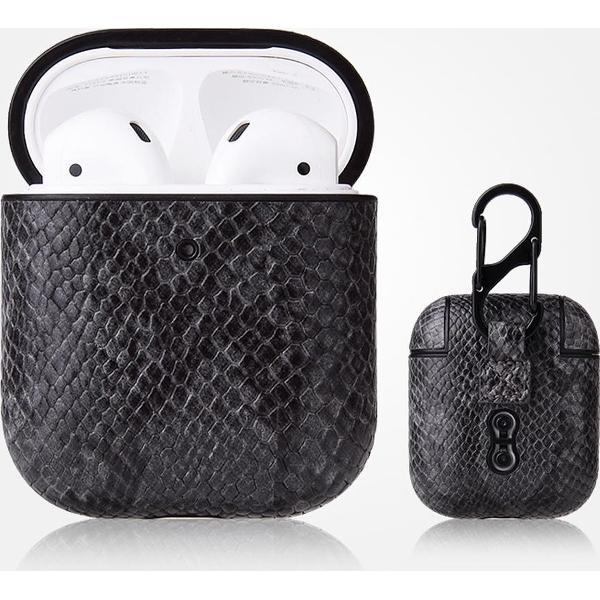 By Qubix - AirPods 1/2 hoesje PU Leer Slangenleer - Grijs - AirPods hoesjes