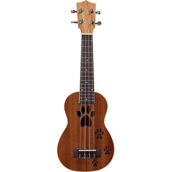 Sopraan ukelele met nylon snaren. Geschikt voor alle leeftijden en uitgevoerd in Mahonie. Het traditionele klankgat is vervangen door de uitgefreesde pootafdruk waardoor de 21 DL een leuke en herkenbare uitstraling heeft.