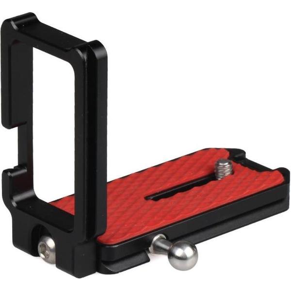 Met een L-bracket kunt u snel wisselen tussen een horizontale (landschap) en een verticale (portret) opnamepositie. Het rode anti-slip rubber voorkomt dat de camera kan verschuiven.