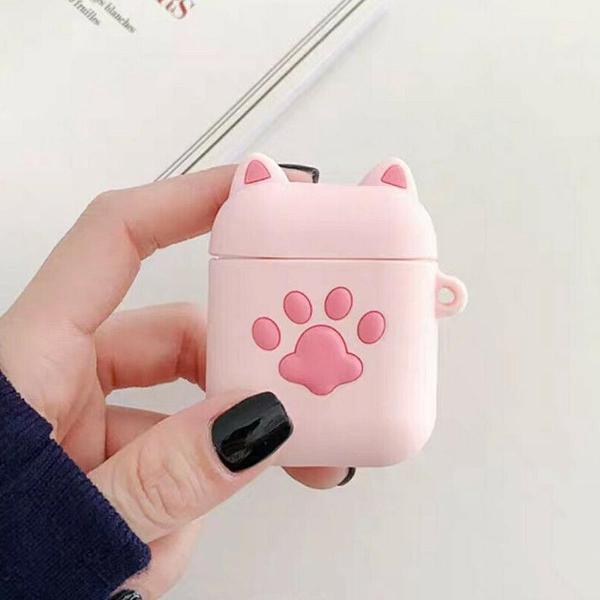 Cartoon Airpods Silicone Case Cover Hoesje voor Apple Airpods - pink footprint - met karabijn