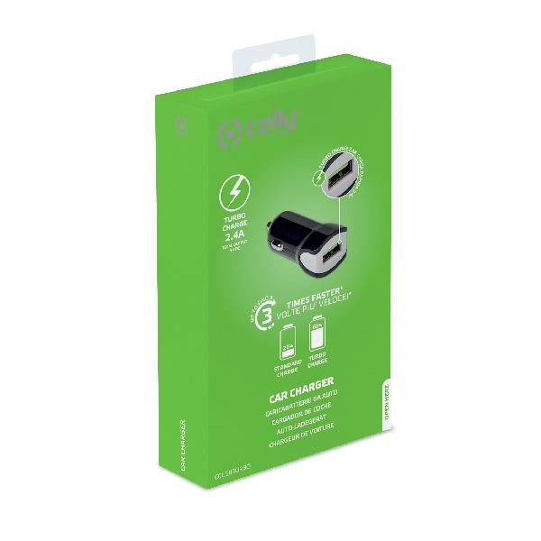 Celly TURBO CAR Charger met 1 USB poort, output 2.4A, zwart