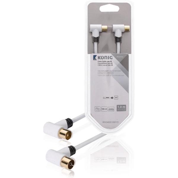 Coax kabel 100 dB coax male haaks - female haaks 1,00 m wit