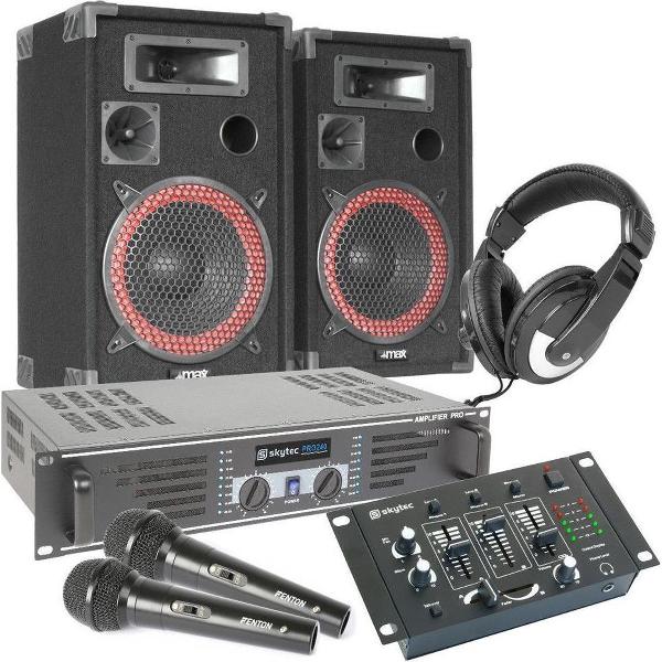 Complete 500W DJ Set - Boxen, Versterker, Mixer, Koptelefoon, Microfoon en kabels