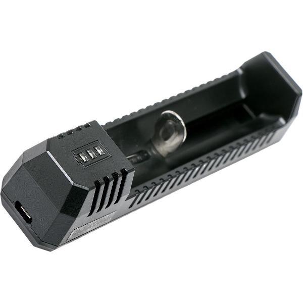 De Nitecore UM10 1 is in staat om te volgende accu's op de laden: 18650-, 18490-, 18350-, 17670-, 17500-, 16340(RCR123)-, 14500- en 10440. De Nitecore UM10 1 heeft een compacte vormgeving en is voorzien van een soort voetje wat je kunt gebruiken om de USB kabel op te rollen. De accu wordt intelligent en veilig geladen en de batterijstatus wordt voortdurend in de gaten gehouden. Op de voorzijde bevindt zich een LCD-display. Deze geeft in procenten aan hoe ver het laden gevorderd is. Specificaties Merk: Nitecore *Geschikt voor: 10440, 14500, 16340, 17500, 17670, 18350, 18490, 18650 *Maximaal aantal accu's tegelijk: 1 *Laadstroom: 1000 mA, 500 mA *Laadindicatie: LCD *Type adapter: USBDe De Nitecore UM10 1 van Nitecore is het ideale product om je fotografie naar een hoger niveau te tillen. Via FotografieVergelijk.nl kan je eenvoudig De Nitecore UM10 1 bestellen bij de goedkoopste leverancier. Met een product van het merk Nitecore verzeker je jezelf van goede kwaliteit.