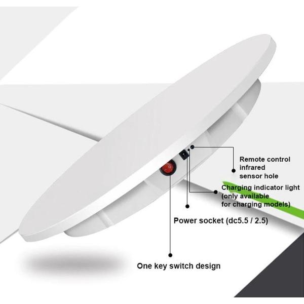 Een handig draaiplateau voor het maken van foto's en/of video's van producten. Je kunt het draaiplateau links- en rechtsom draaien in verschillende snelheden met een afstandsbediening. Zo kun je zelf bepalen wat handig is voor het maken van foto's en/of video's.
