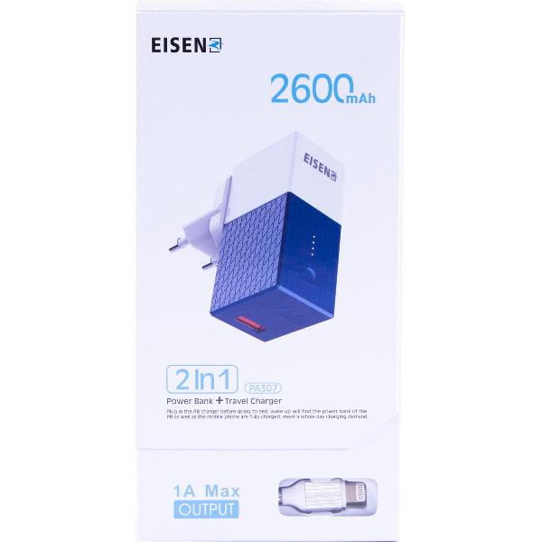 Eisenz PA307 2 in 1 POWER BANK + OPLADER Met iPhone Kabel