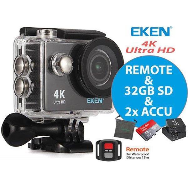 EKEN H9R + Sandisk 32GB SD + Extra Accu + Waterproof bag + 23 Accessoires