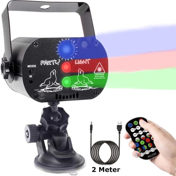 De discolamp maakt gebruik van 2 lasers (Rood en Groen) en 1 lamp (Rood, Groen en Blauw). Deze kleurcombinaties samen zorgen voor 60 unieke patronen, die makkelijk te wisselen zijn door de afstandsbediening.