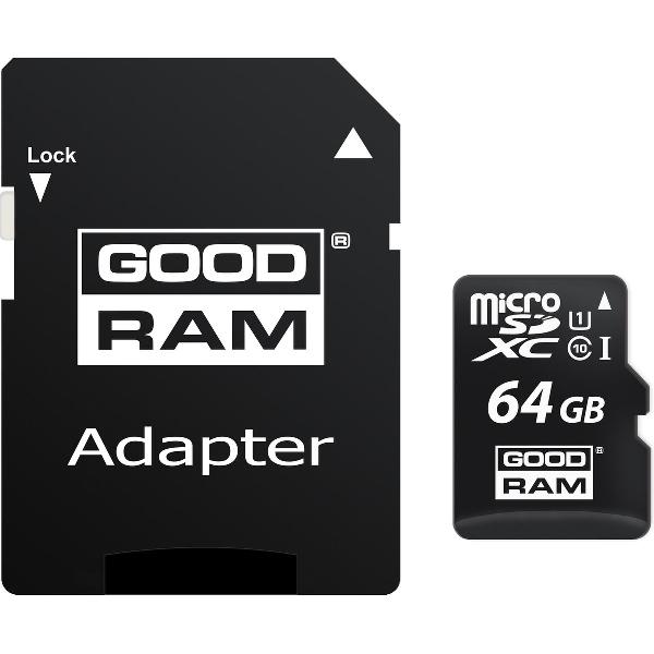 Goodram Micro SDHC/XC kaart 64GB Class 10 UHS-I met adapter