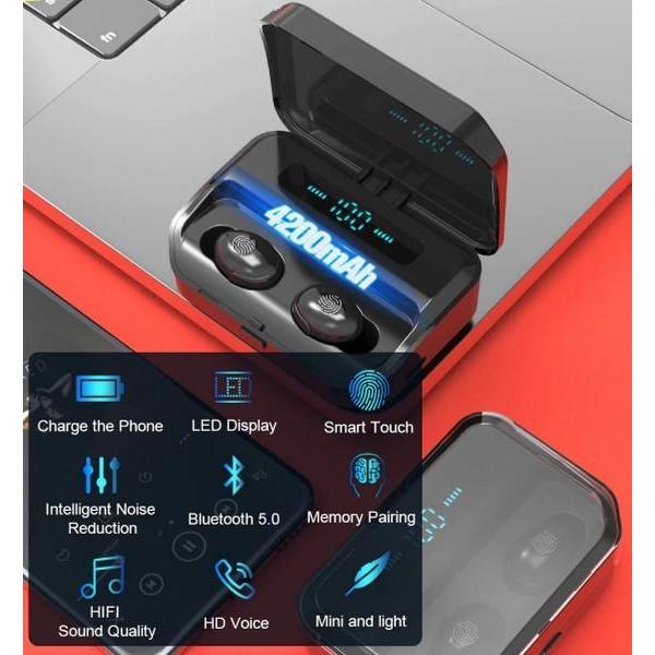 - 4200 mAh TWS Bluetooth Earphone 5.0 9D Stereo Wireless Headphones Touch Control IPX8 Waterproof Wireless Earphones Power Bank