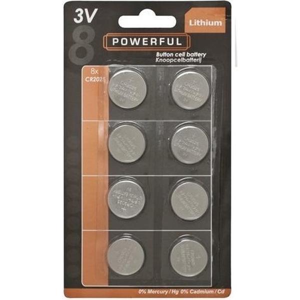 Knoopcel 3V CR2025 Powerfull Lithium - 8 stuks