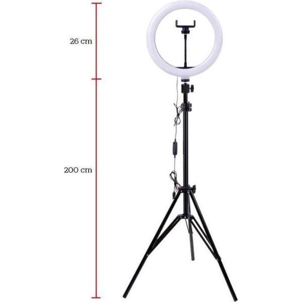 LED Ringlamp met statief, telefoonhouder en bluetooth afstandsbediening - 26 cm/10 inch ringlamp - 200cm (verstelbaar) - USB - TikTok - YouTube - Vlog - Ringlight - flitser - Ring lamp - Ringlamp telefoon - Make-up light - Studiolamp