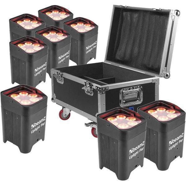 Lichtset - BeamZ lichtset met 8x BBP96 accu Uplights + flightcase met oplaadfunctie