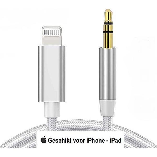 Lightning naar 3,5 mm headphone audio aux jack kabel - iPhone auto kabel - 1 Meter - Zilver