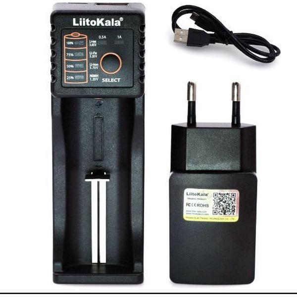 LiitoKala Battery Charger Lii-100. De oplader is geschikt voor oplaadbare (lithium en Nimh) batterijen van 1,2V, 3,2V, 3.7V en 3,8V waaronder de volgende modellen: 10440, 18650, 14500, 17500, 18500, 17670, 18490, 18350, 16340 (RCR123), 26650, 26350, 25500, 20700, AA en AAA