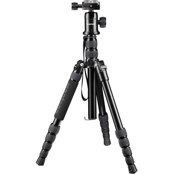 mantona travel tripod DSLM with ball head * compact and light aluminium travel tripod with ball head * ball head with panorama scale and two bubble levels * small packing dimensions and very light * also usable as monopod * tripod legs with rubber feet and spikes * max. load bearing capacity: approx. 5kg * incl. tripod bag Compact and light aluminium travel tripod The travel tripod DSLM Travel from mantona is an extremely compact tripod ideally suitable for travels. With a total weight of approx. 1300g this aluminium tripod is light and can be transported in the supplied bag without any problems. The leg angles can be adjusted up to 180° so that you can fold it up for transportation to a compact length of 35 cm and achieve even higher flexibility in use. Even ground level shots are thus no problem. Four leg segments with quick-action locks enable uncomplicated height adaptation as well as quick set-up and disassembly. The tripod can be extended to a height of 143 cm. Rubber coated tripod legs ensure high stability. Ball head with two bubble levels Particularly convenient: The tripod can also be used as a monopod. The monopod can be extended by means of the extendable two stage centre column. The centre column has a weighting hook which can be used to hang up weights for stabilizing the tripod. The ball head is equipped with a convenient panorama scale changing to portrait format is possible without any problems. For exact alignment the ball head has two convenient bubble levels - one for portrait and one for landscape format. With a ¼ inch and 3/8 inch tripod screw the camera can either be mounted with a quick-release plate to the head or directly on the tripod. Ideal for DSLMs With a maximum load bearing capacity of approx. 5 kg the tripod is the ideal solution for use with system cameras.De mantona reisstatief DSLM Travel met kogelkop van mantona is het ideale product om je fotografie naar een hoger niveau te tillen. Via FotografieVergelijk.nl kan je eenvoudig mantona reisstatief DSLM Travel met kogelkop bestellen bij de goedkoopste leverancier. Met een product van het merk mantona verzeker je jezelf van goede kwaliteit.