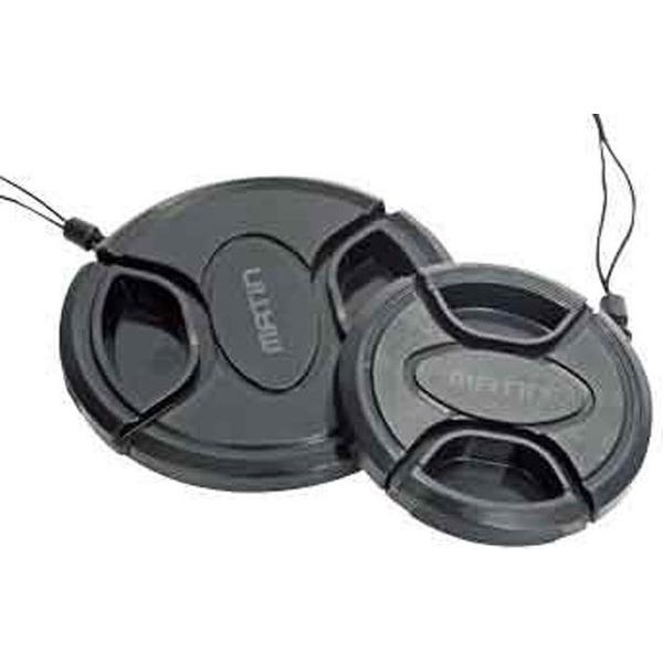 Een sterke snap-on lensdop voorzien van een koord van elastiek, welke om de lens geplaatst kan worden om de lensdop niet te verliezen.