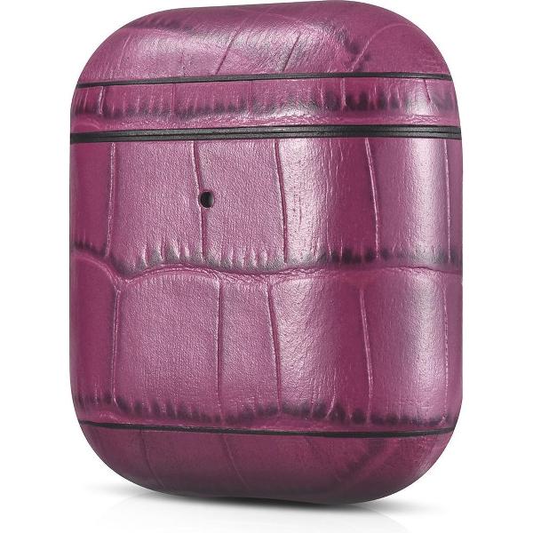 Mossmedia AirPods Hoesje / Case - Leder - Paars