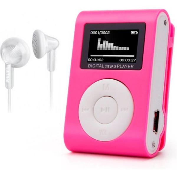 MP3 Speler - MP3 Speler inclusief Oordopjes - MP3 16GB Geheugen - MP3 Speler Roze