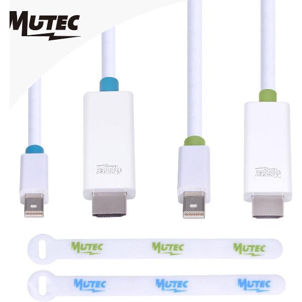 MutecPower " 2 pak" 3 meter MINI DisplayPort (DP) naar HDMI kabel - mannelijk naar mannelijk - Ultra HD 4k resolutie WIT met 2 kabel koppelingen