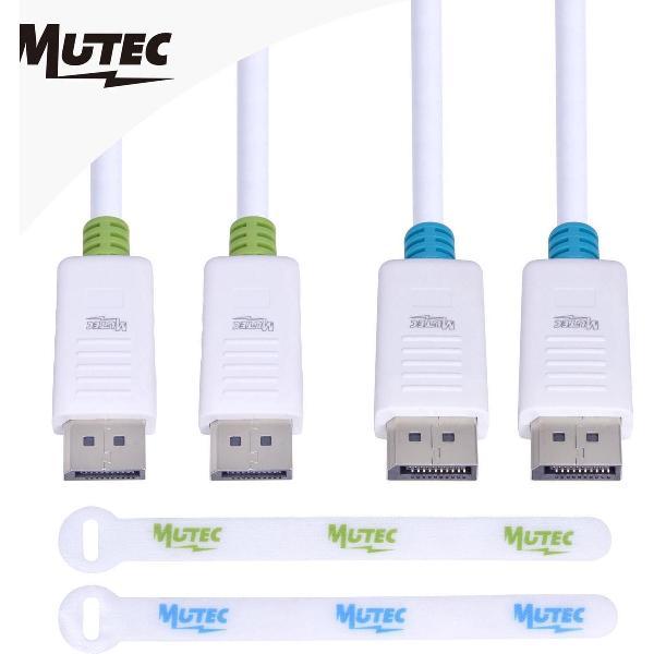 MutecPower "2 pak" 5 meter kabels, DisplayPort (DP) naar DisplayPort (DP), mannelijk naar mannelijk, Ultra HD 4k resolutie, WIT met 3 kopplingen
