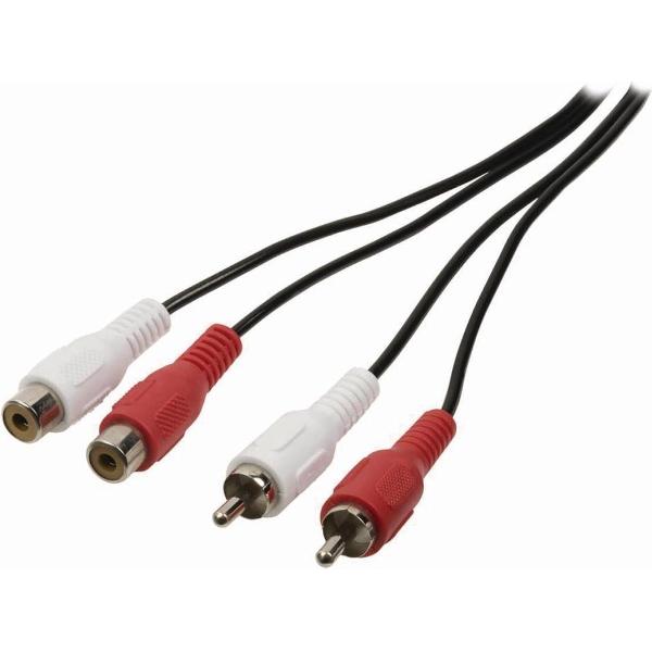 Deze stereo audioverlengkabel met RCA-connectoren is geschikt voor het verlengen van een audiokabel voor apparatuur zoals een CD- of DVD-speler met een versterker.